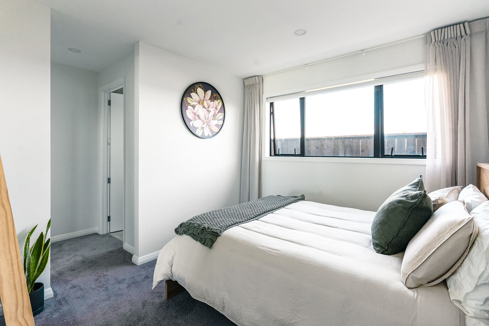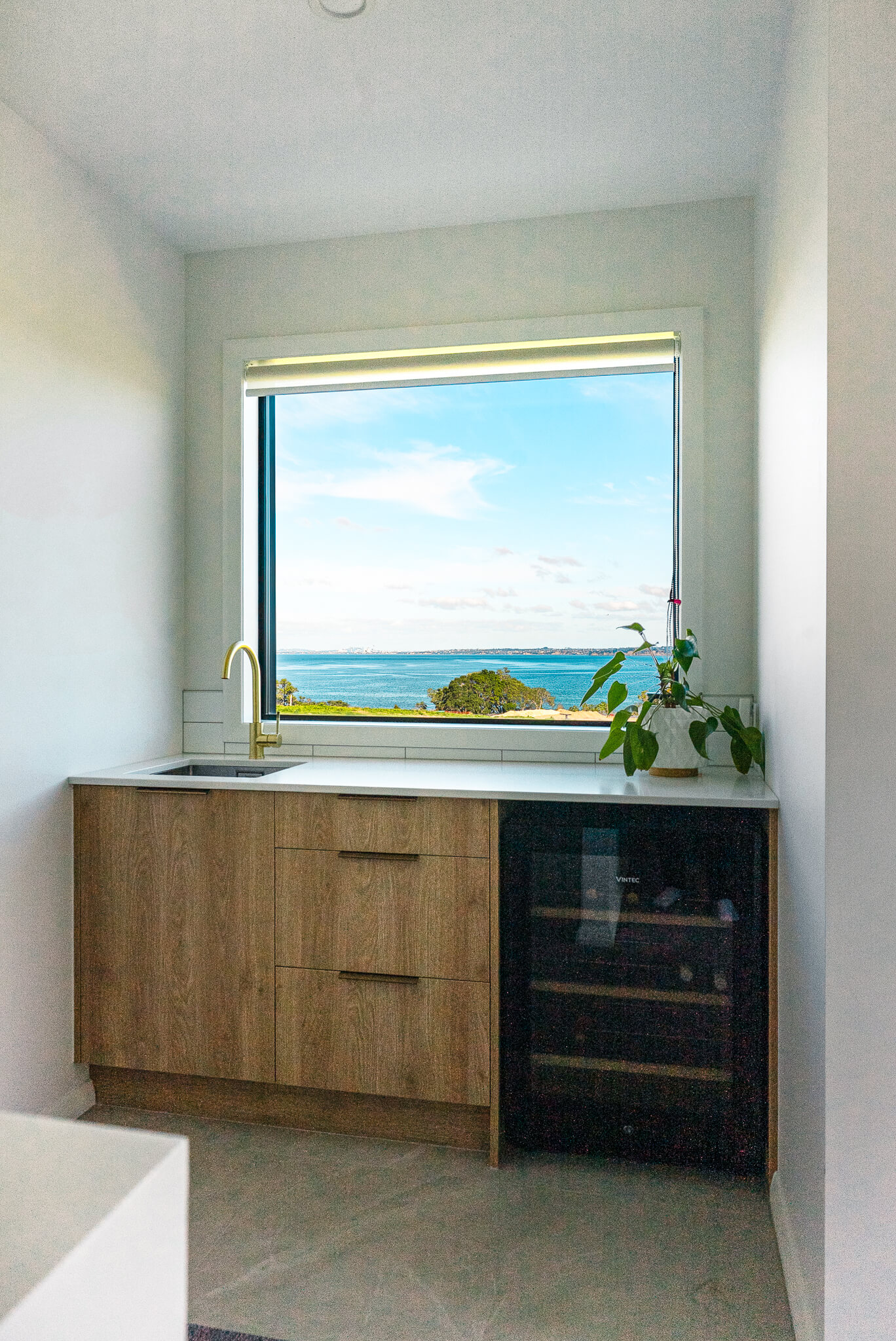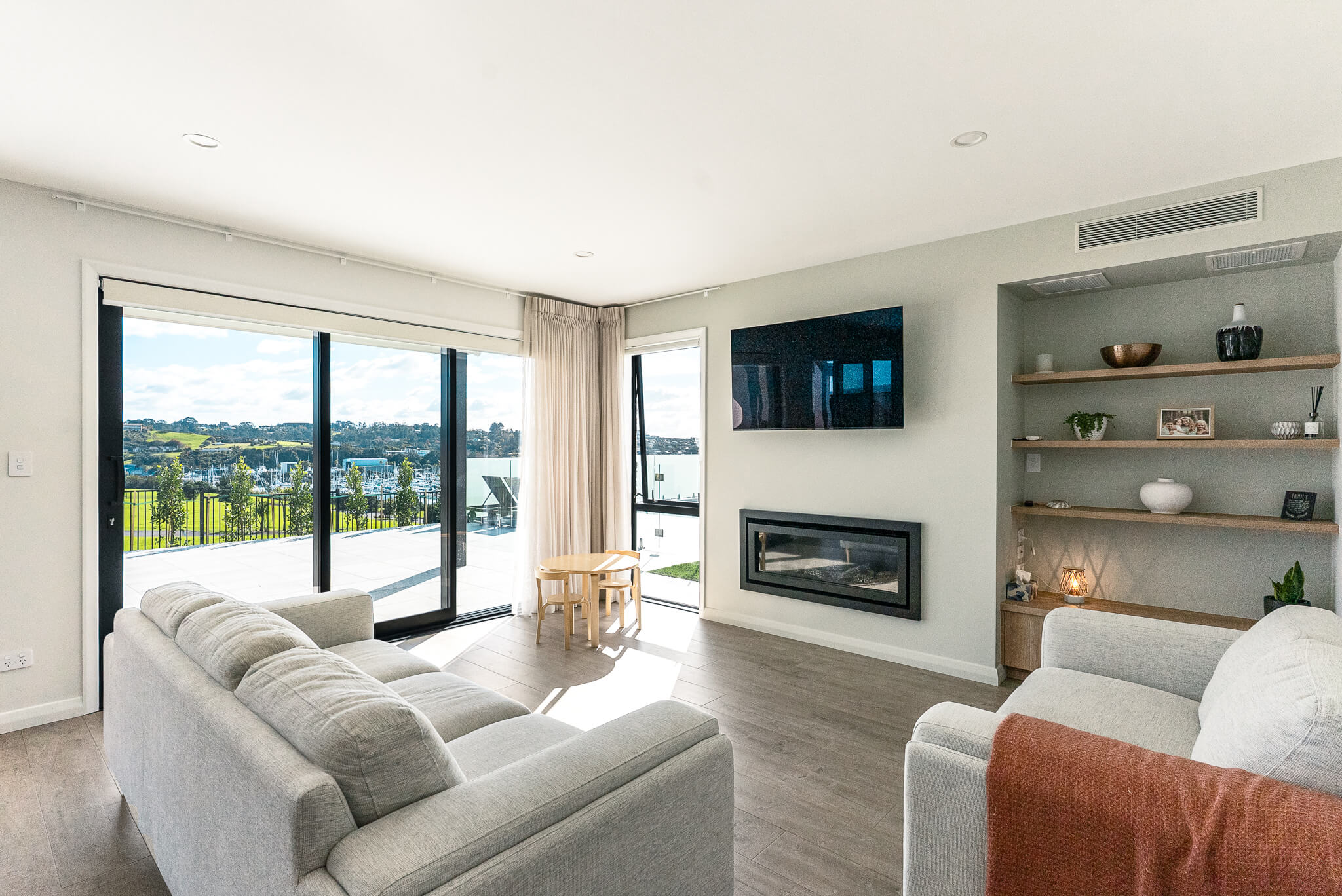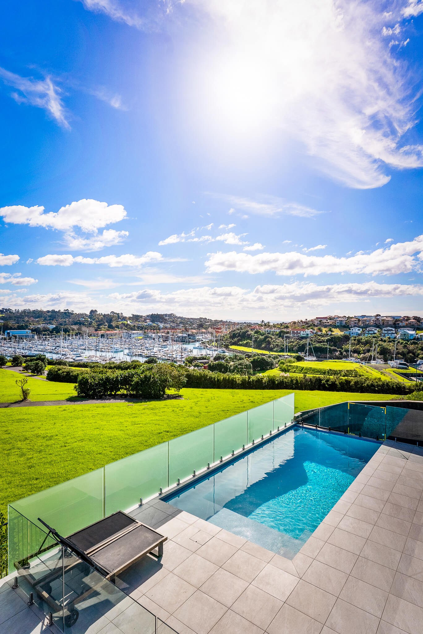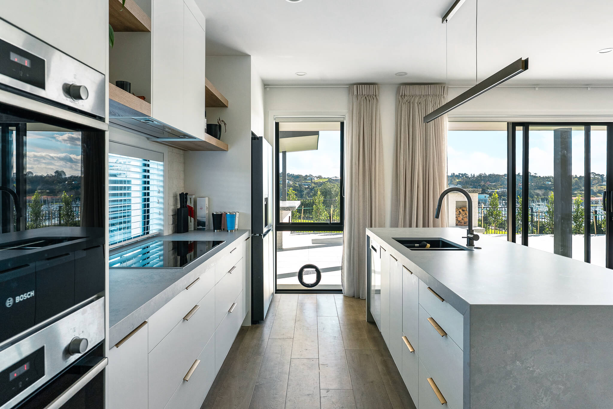 Set in the scenic Gulf Harbour, this 350m² home blends bold design with family functionality. Designed and built by Madison Park Homes, it features six bedrooms, five bathrooms, four living areas, and a private upstairs retreat for parents.