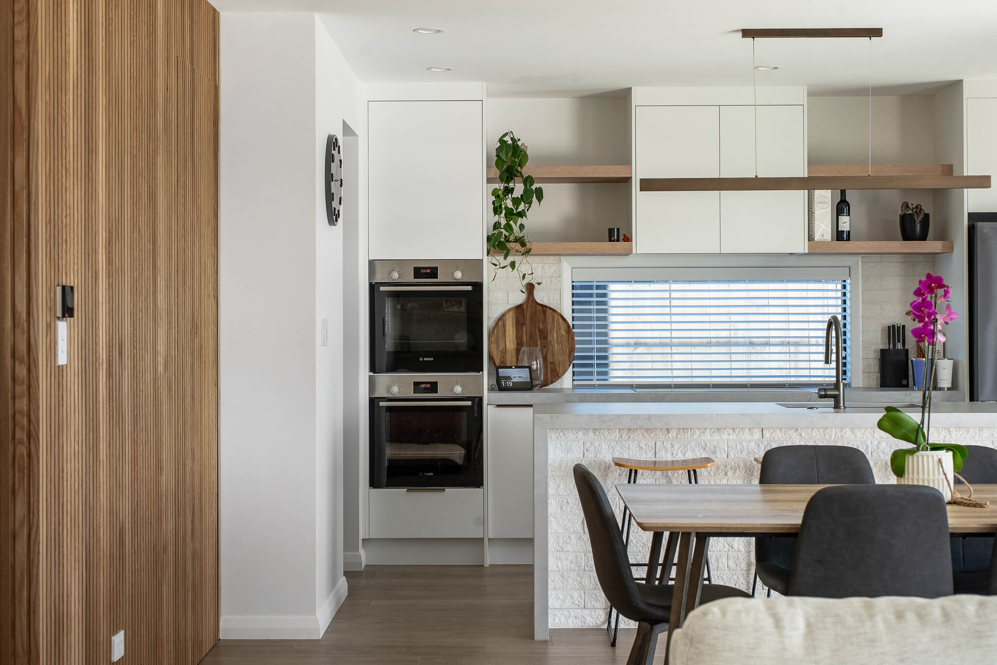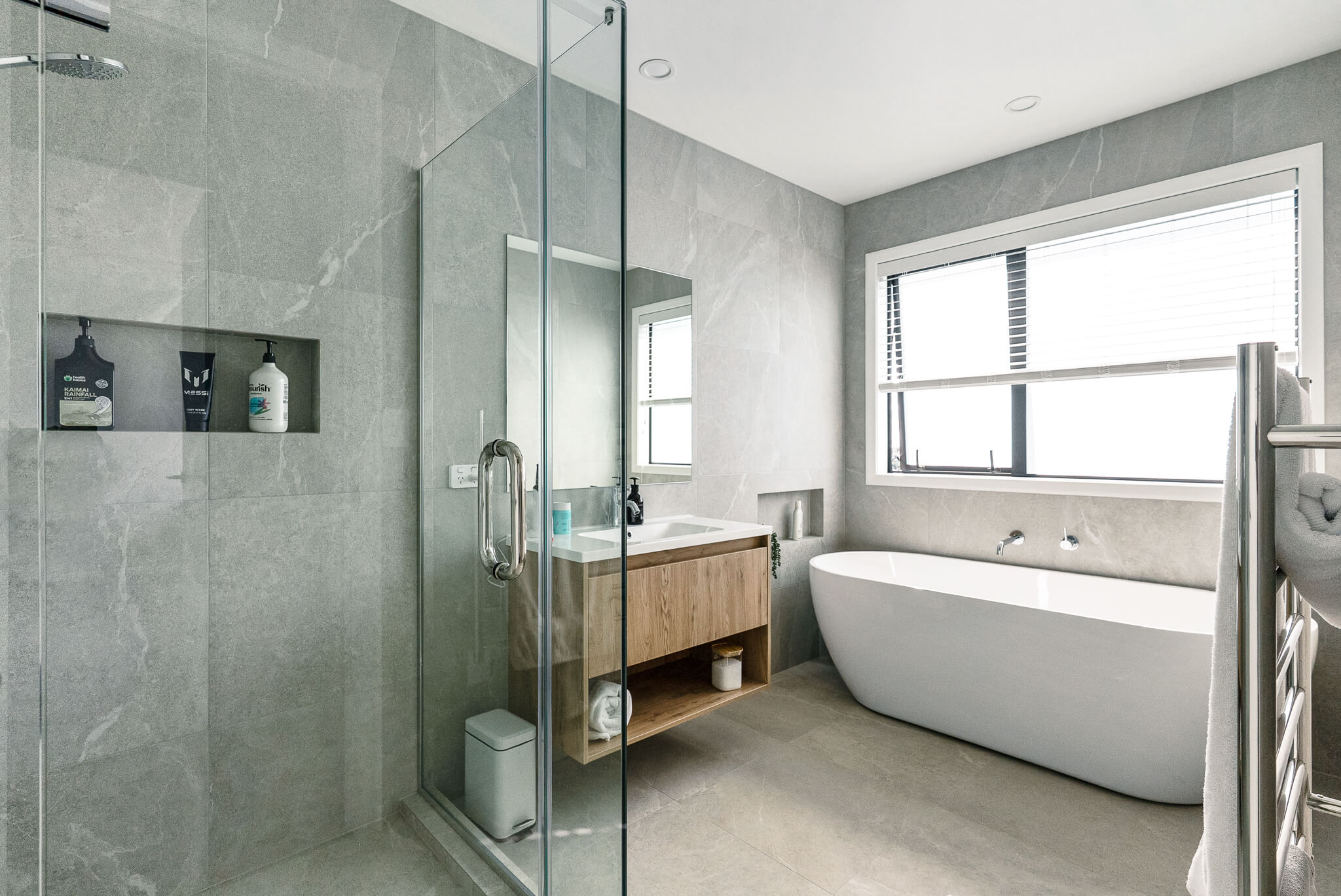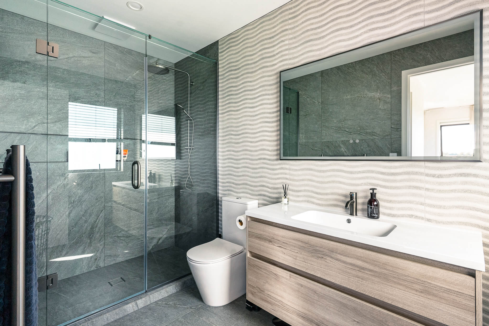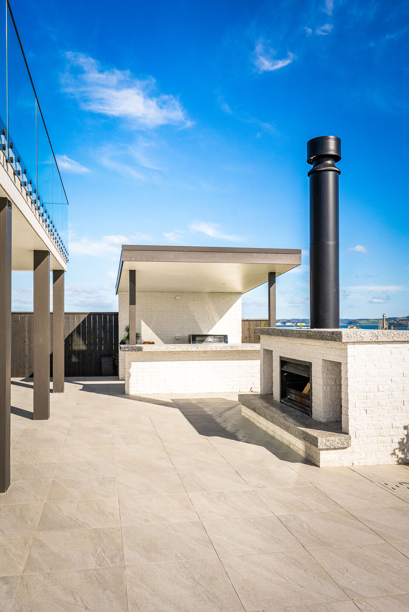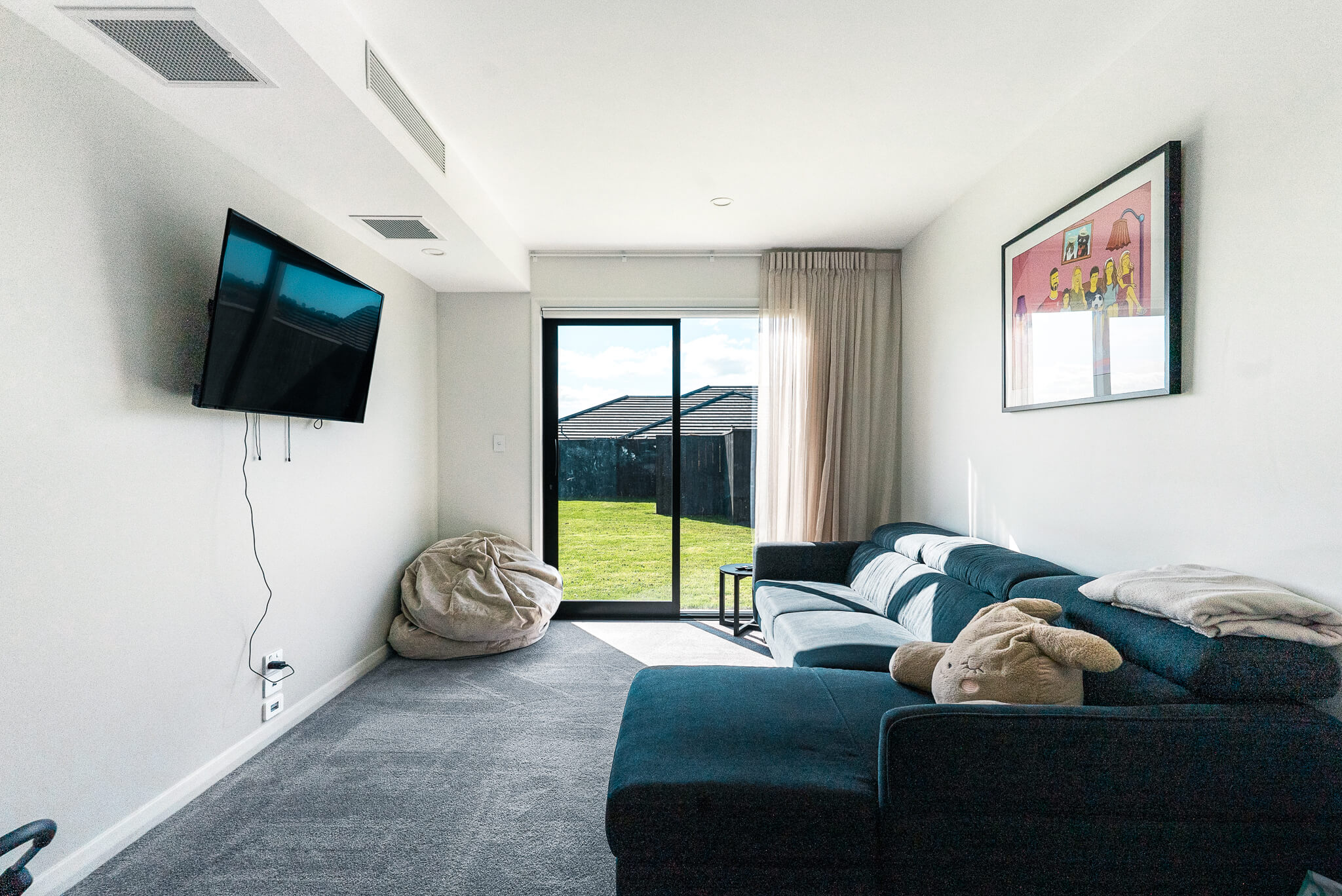 Set in the scenic Gulf Harbour, this 350m² home blends bold design with family functionality. Designed and built by Madison Park Homes, it features six bedrooms, five bathrooms, four living areas, and a private upstairs retreat for parents.