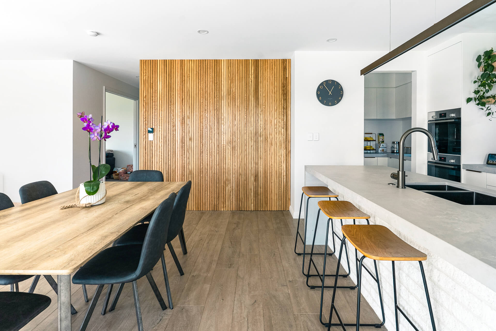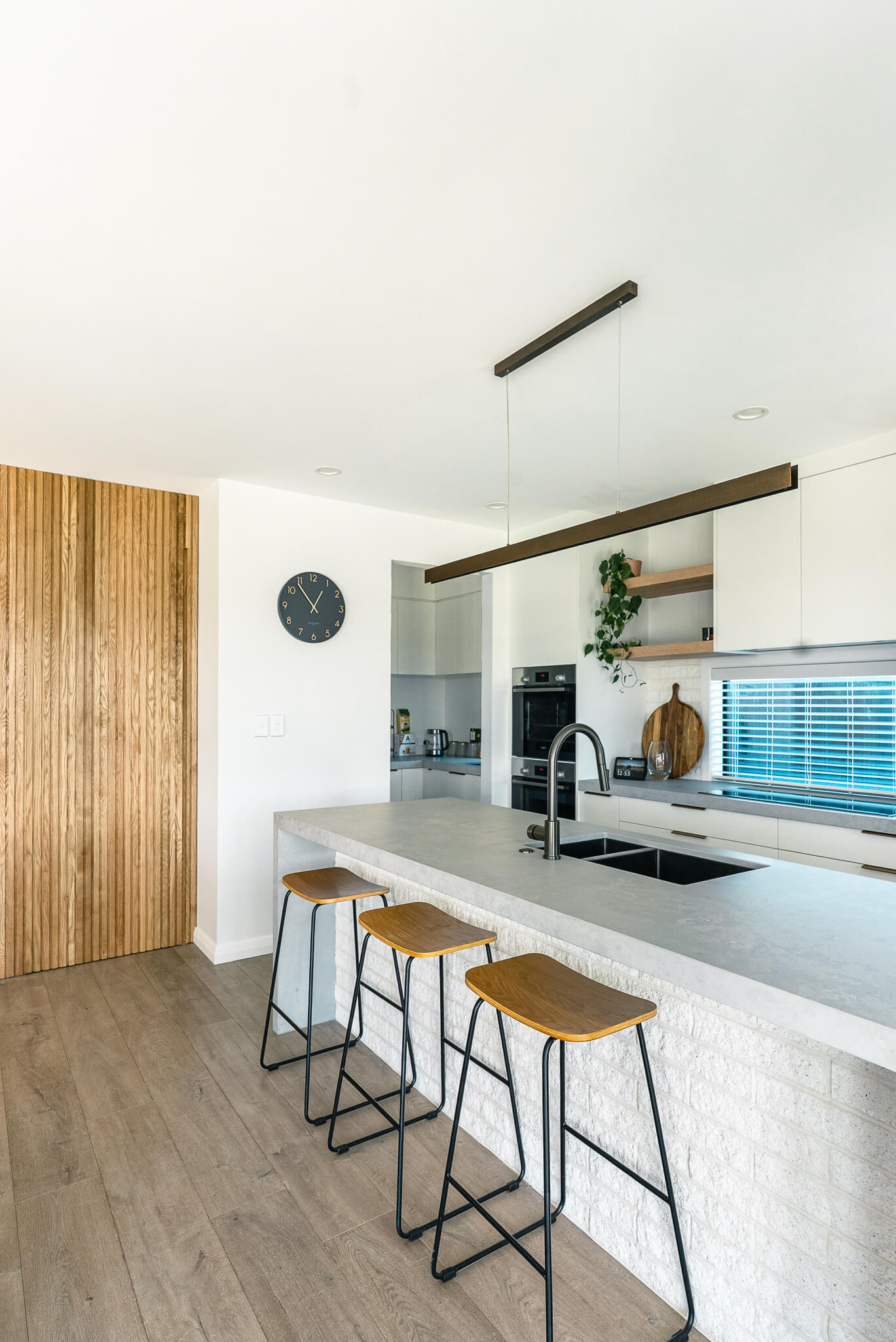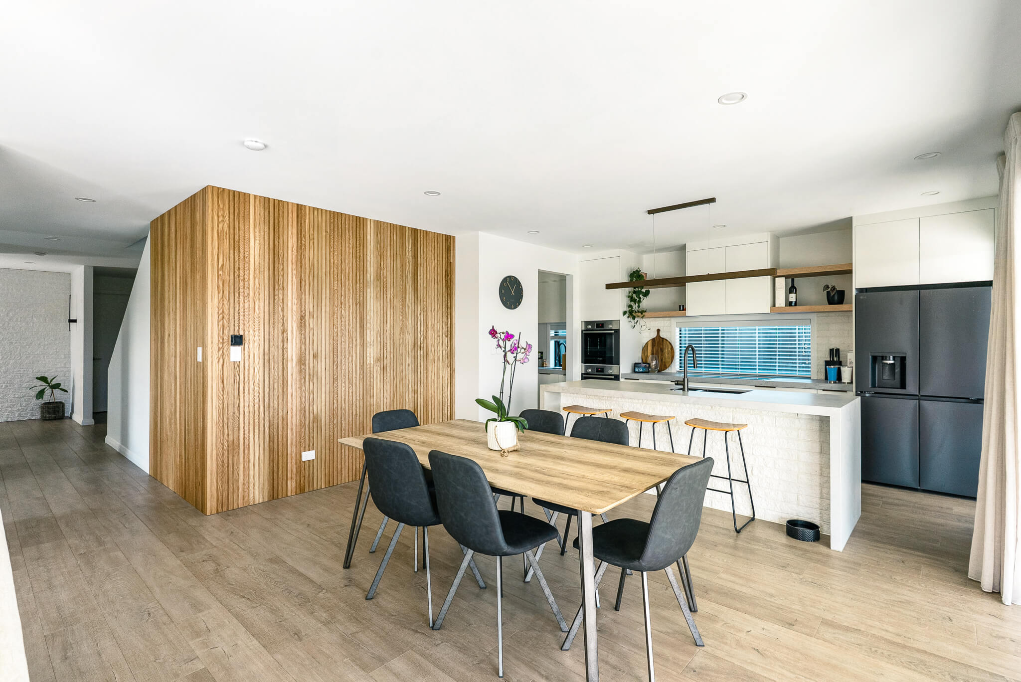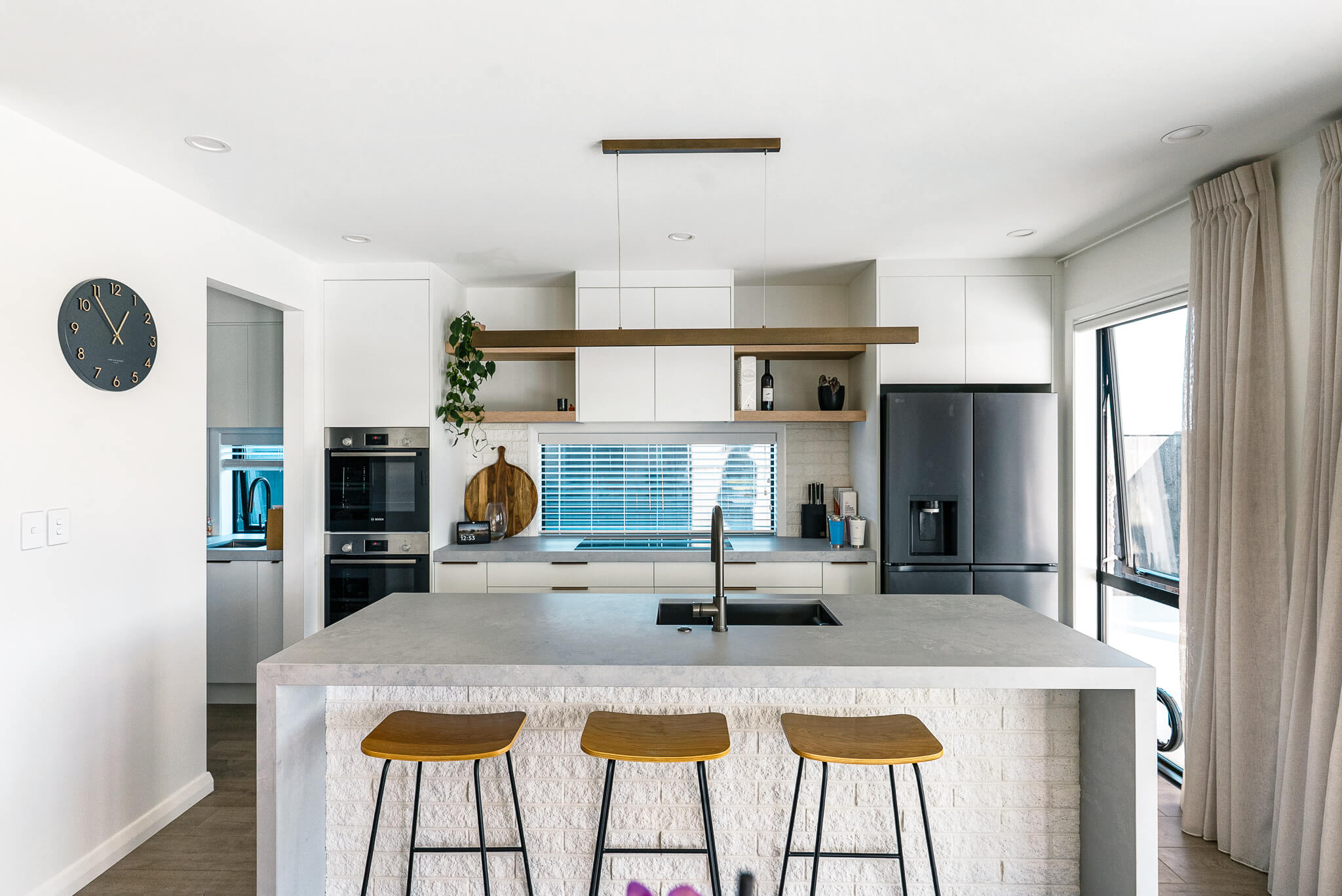 The homeowners added a personal touch by completing the brickwork themselves, reflecting their craftsmanship alongside Madison Park Homes’ expertise. The home features innovative materials like Abodo Vulcan cladding, Firth Coastal Slimline bricks, and a bespoke kitchen with scullery.